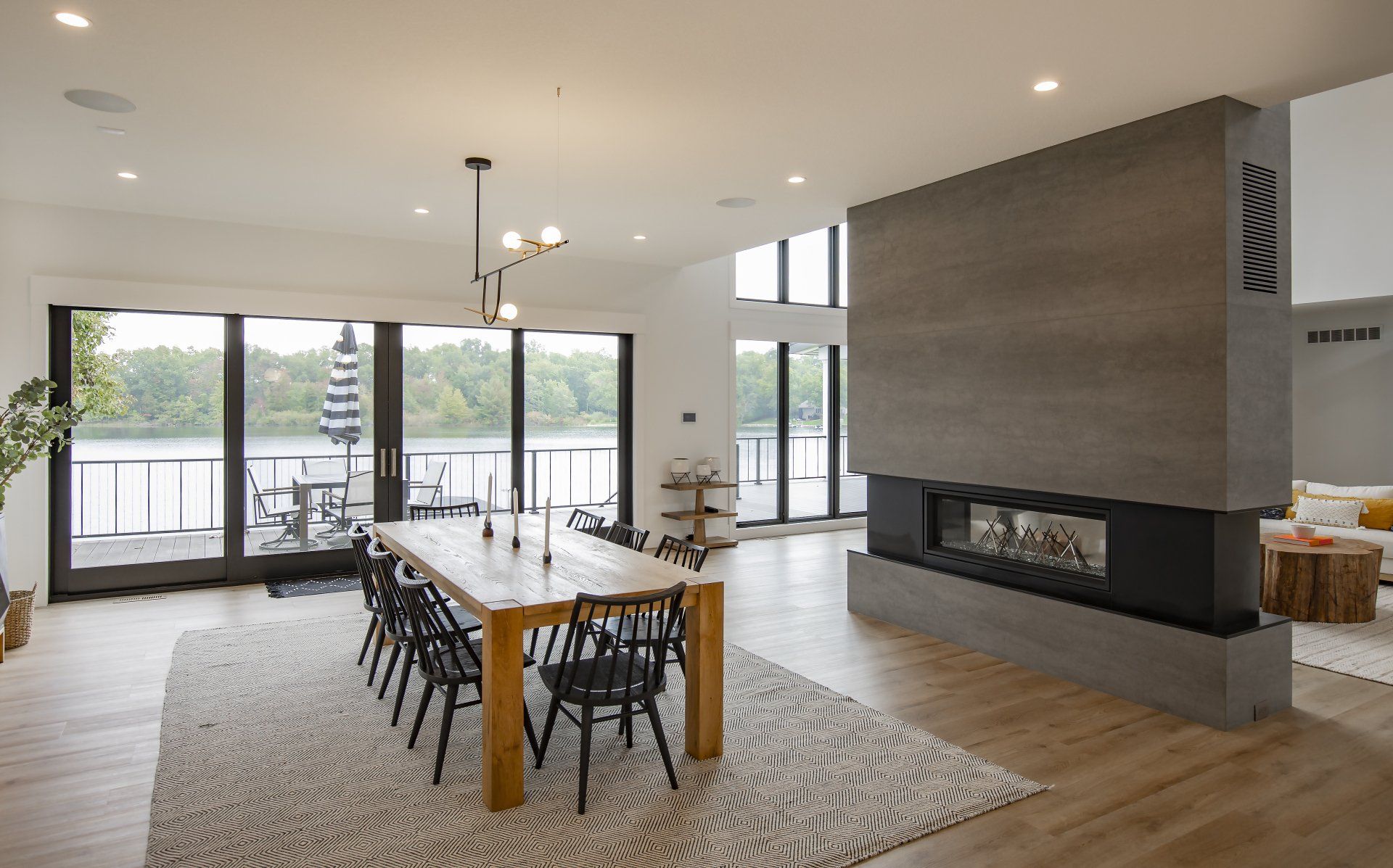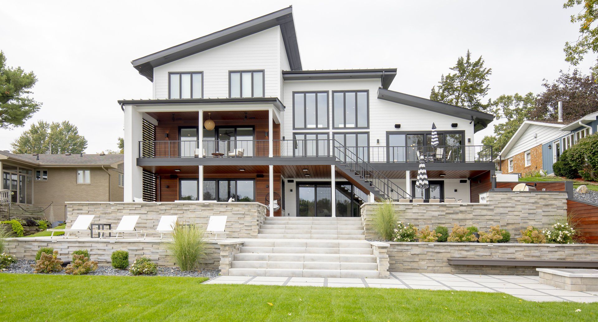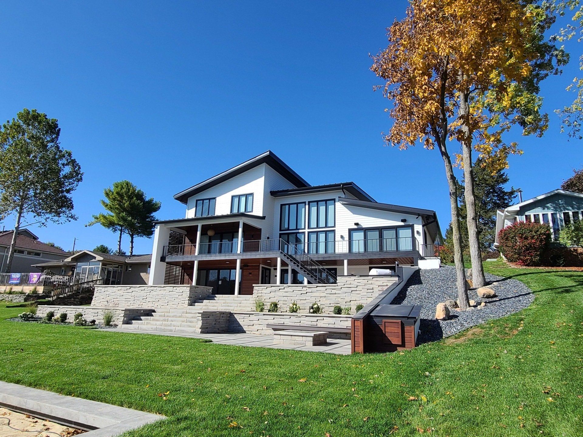 Located in southern Michigan this modern home is a sight to see. Inside, the home features breathtaking lake views throughout, a large open floor plan with an eye-catching fireplace shared by the kitchen and living room that makes a striking impression as you walk into the home. In addition, this home makes heavy use of multiple outdoor living spaces to ensure the full benefits of lake living.