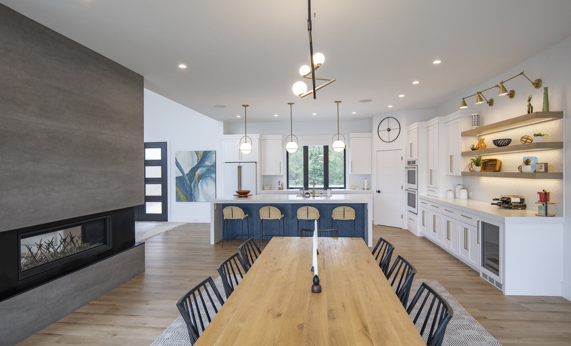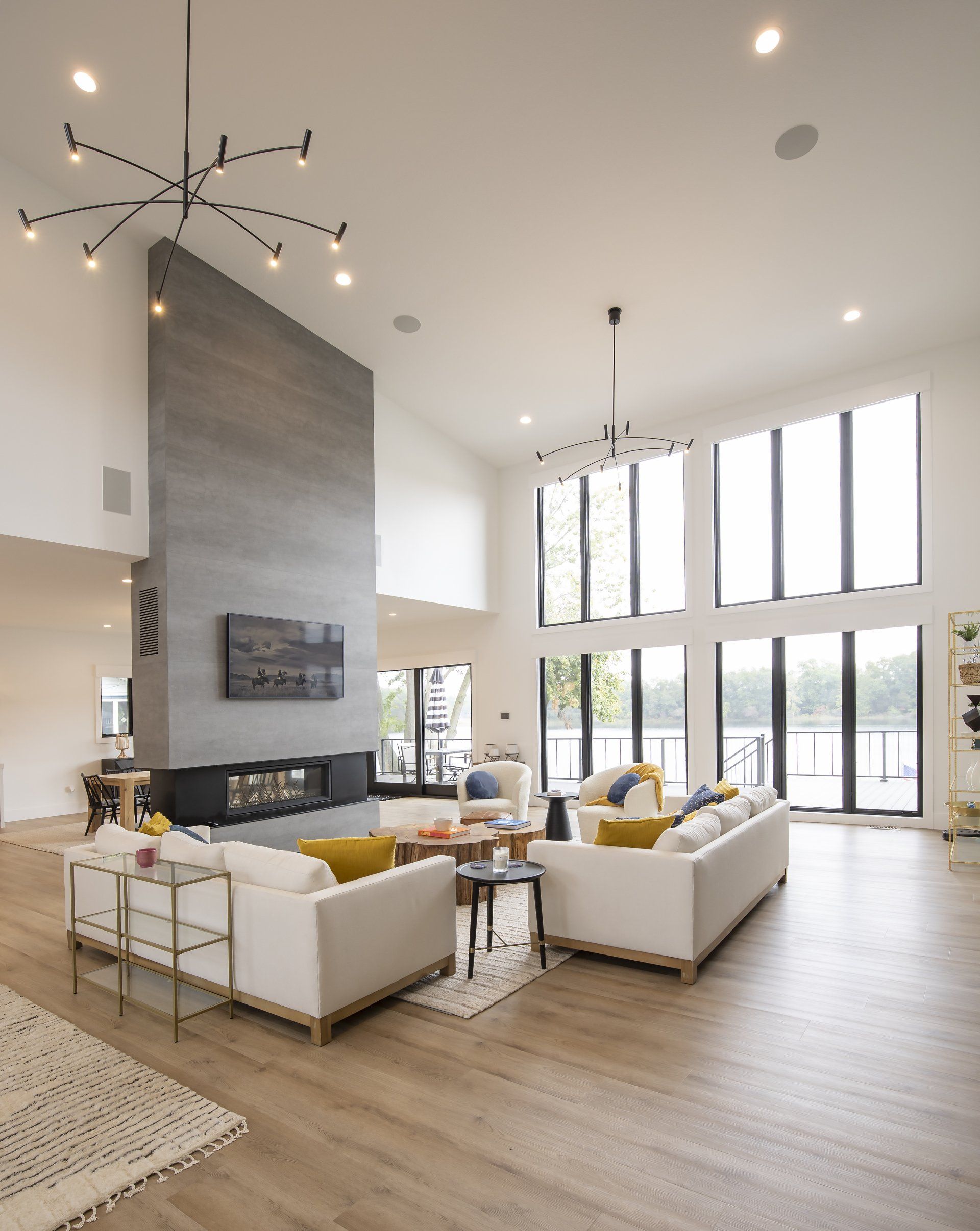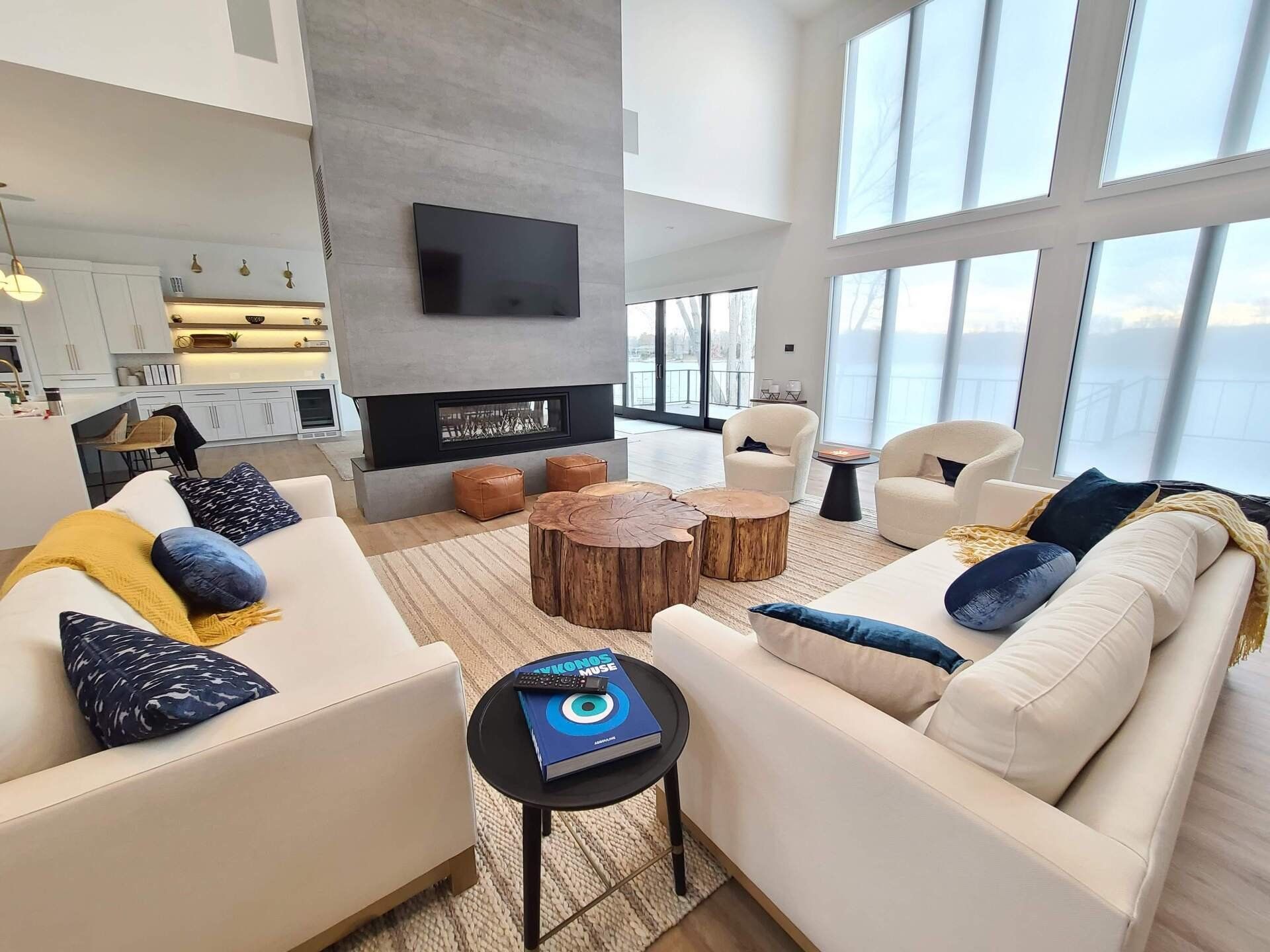 Located in southern Michigan this modern home is a sight to see. Inside, the home features breathtaking lake views throughout, a large open floor plan with an eye-catching fireplace shared by the kitchen and living room that makes a striking impression as you walk into the home. In addition, this home makes heavy use of multiple outdoor living spaces to ensure the full benefits of lake living.